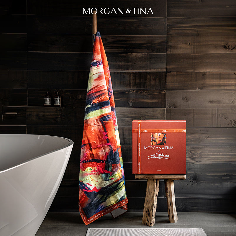 Morgan&Tinaは、LVMH傘下の化粧品ブランド、メイクアップフォーエバーの元チーフプロダクト開発ディレクター兼アートクリエイティブディレクターであるアーティスト、ルドヴィク・ラッソン氏とタッグを組んだ。ラッソン氏の探求的な油絵「不調和と統合」とMorgan&Tinaのバスタオルを組み合わせることで、Morgan&Tinaはアートを生活に融合させるというブランドコンセプトを改めて高めている。